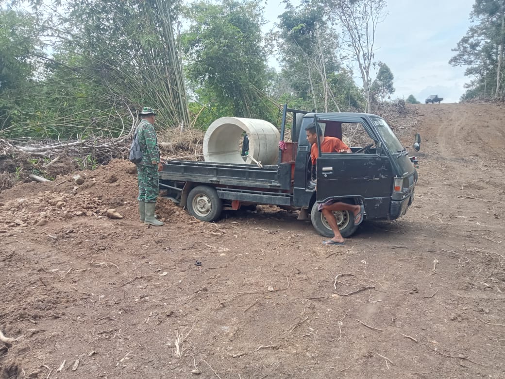 Danramil 406-08/Lubuk Linggau, Kapten Inf Well, bersama sejumlah anggota turun langsung ke wilayah binaan untuk melakukan monitoring kegiatan karya bakti pembukaan jalan di Kecamatan Lubuk Linggau Barat I, Kota Lubuk Linggau.