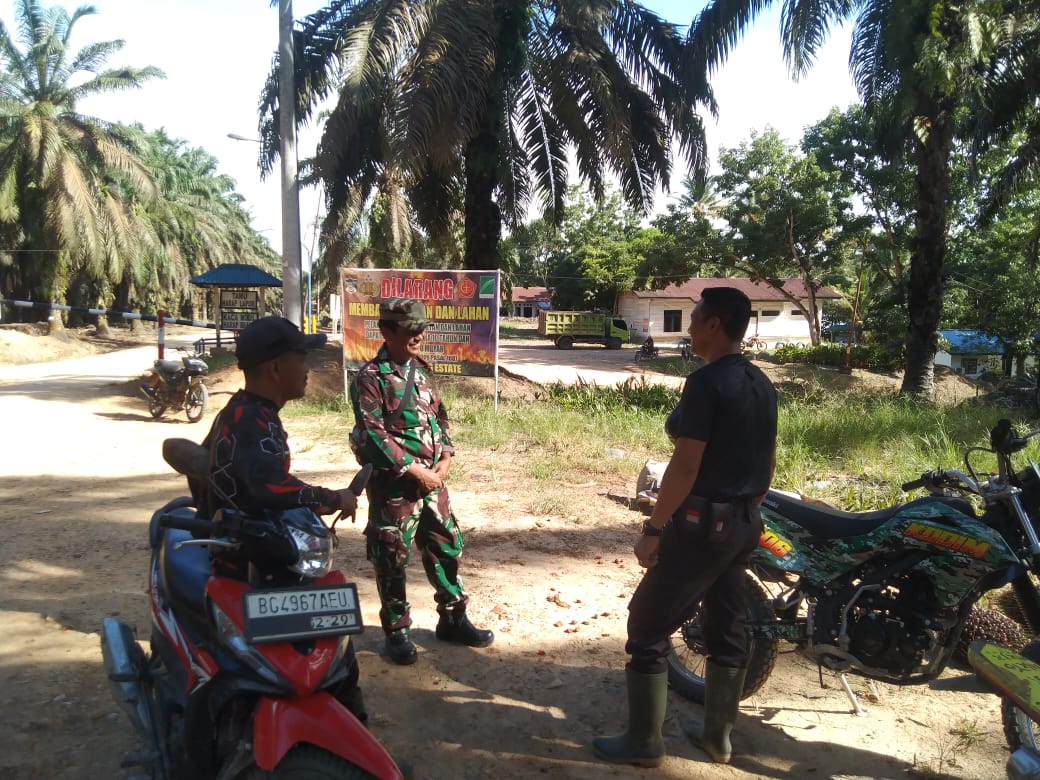 Sersan Kepala (Serka) Hendri Gusnadi, Babinsa Koramil 406-02/Rawas Ilir, melaksanakan kegiatan Komunikasi Sosial (Komsos) bersama para pekerja perkebunan di Desa Air Bening, Kecamatan Rawas Ilir, Kabupaten Musi Rawas Utara (Muratara).
