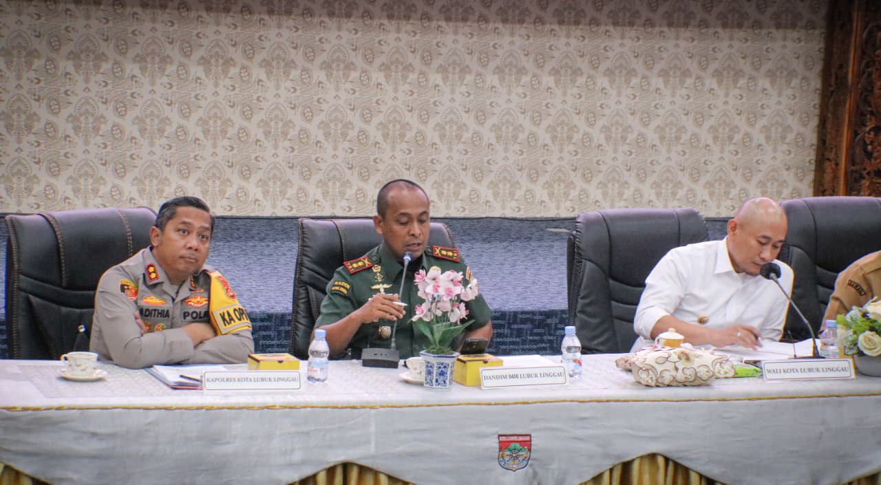 Lensa Garuda – kota Lubuklinggau. Komandan Kodim 0406/Lubuklinggau, Letkol Inf Danny Steven Surbakti, S.A.P., M.M., menghadiri Rapat Koordinasi Forum Komunikasi Pimpinan Daerah (Forkopimda) Kota Lubuklinggau dalam rangka kesiapsiagaan menjelang perayaan Natal Tahun 2025 dan Tahun Baru 2026, Senin (22/12/2025).