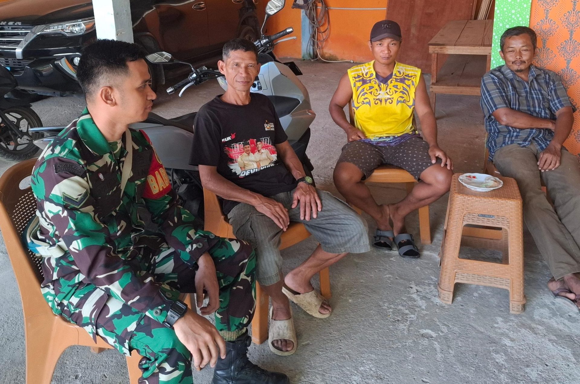 Babinsa Koramil 406-01/Rawas Ulu, Serda Amrullah Rohim, melaksanakan kegiatan Komunikasi Sosial (Komsos) bersama masyarakat Desa Pulau Kidak, Kecamatan Ulu Rawas, Kabupaten Musi Rawas Utara,