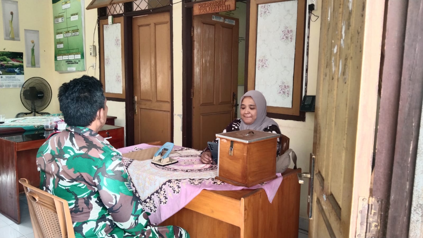 Jalin Komunikasi yang Baik, Serka Junaidi Babinsa Koramil 406-10/Lubuklinggau Timur Jalin Silaturahmi dengan Staf Kelurahan Marga Mulya