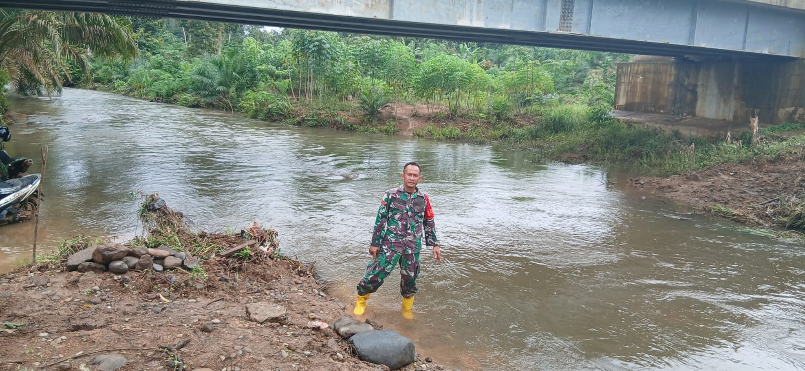 Koptu Taufik Babinsa Koramil 406-06/Tugumulyo turun kesungai rawan banjir