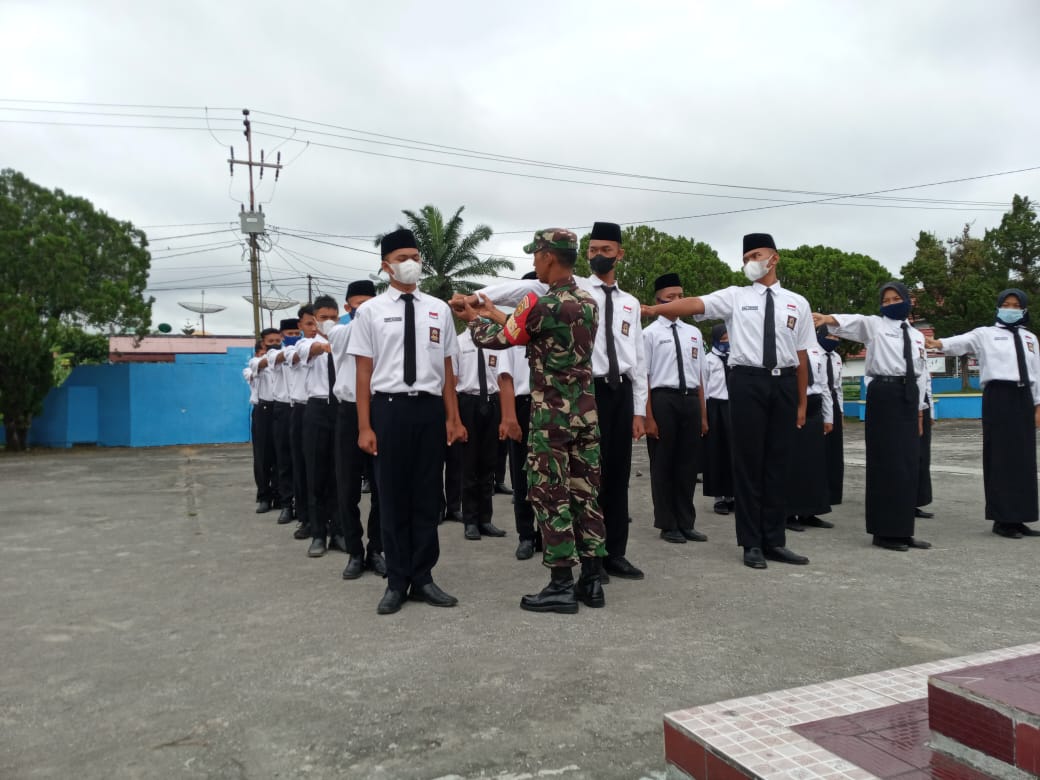 Danramil 406-08/Kota Lubuklinggau Kapten Inf Ajun Taupik melalui Babinsa mengatakan dalam kegiatan pelatihan PBB dan Pengukuhan Paskibra SMK N 3 tetap menerapkan protokol kesehatan guna menghindari penyebaran Covid – 19 di lingkungan sekolah.