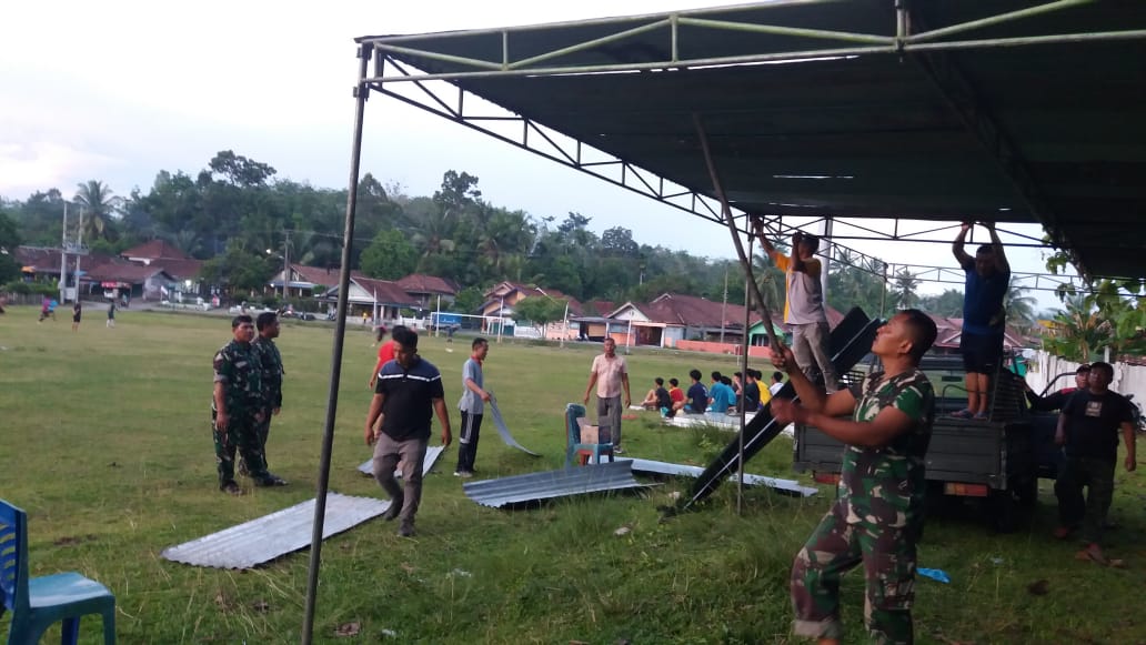 Lensa Garuda- Musi Rawas Utara Menghadapi Pelaksanaan Kompetisi Pertandingan Liga Santri Piala KASAD Koramil 406-01/Rawas Ulu dan Koramil Wilayah Kabupaten Musi Rawas Utara melaksanakan penyiapan lapangan yang digunakan sebagai tempat berlangsungnya pertandingan. Bertempat di Lapangan Bola Kelurahan Pasar Surulangun Kabupaten Musi Rawas Utara, Sabtu (18/06/2022).