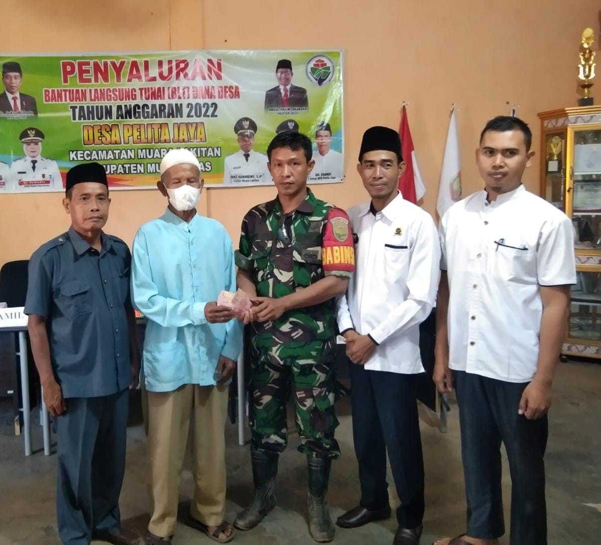 Babinsa Koramil 406-04/Lakitan Serda Joni melaksanakan pendampingan penyaluran Bantuan Langsung Tunai Dana Desa (BLT DD) bertempat di kantor Desa SP1 pelita jaya Kecamatan muara lakitan Kabupaten Musi rawas dengan menerapkan standar protokol kesehatan kepada warga masyarakat, Rabu (22/06/2022).