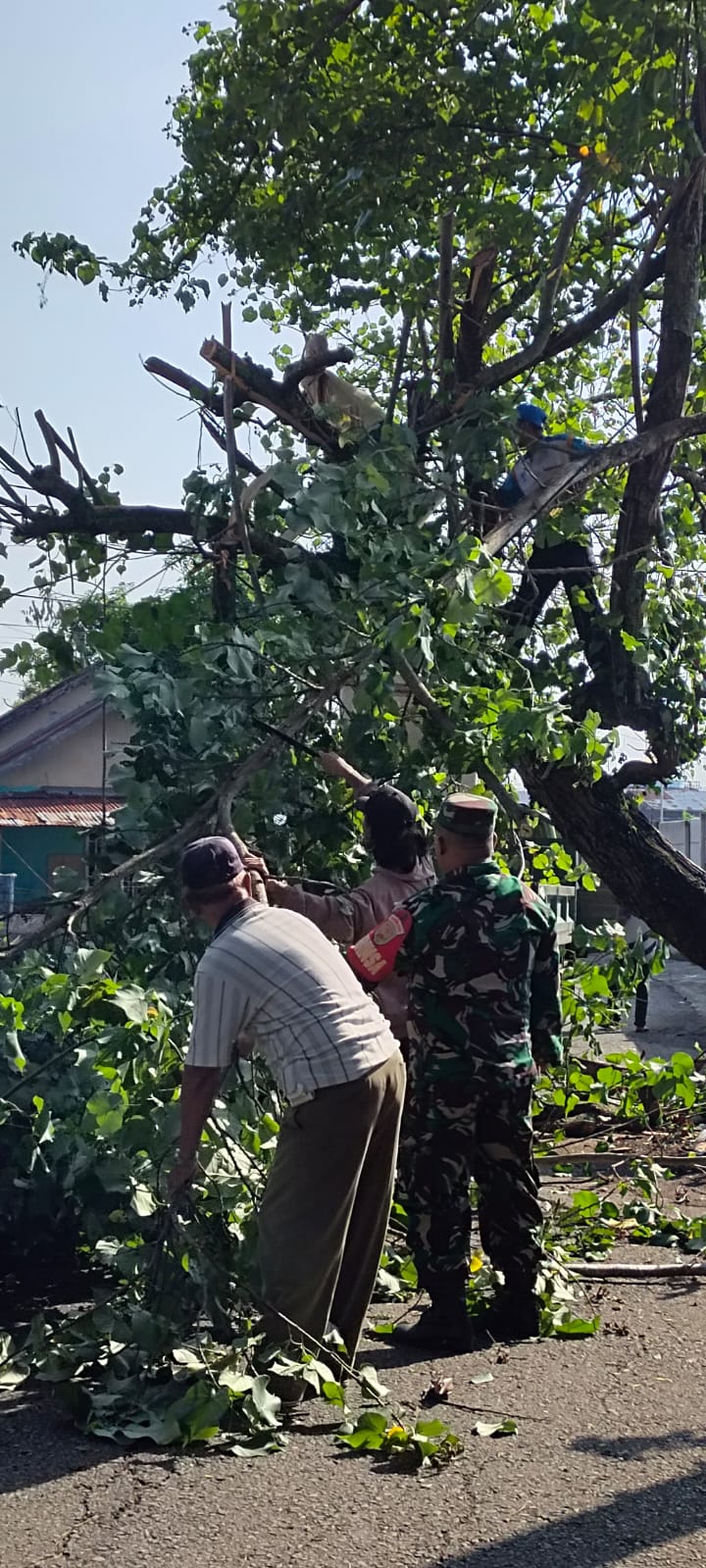 Guna mengantisipasi cuaca buruk dan terjadinya pohon tumbang, Anggota Babinsa Koramil 406-08/Kota Lubuklinggau jajaran Kodim 0406/Lubuklinggau membantu warga menebang pohon yang berada pinggir jalan di RT 03,04,Kelurahan Pemiri Kecamatan Lubuklinggau Barat 2 Kota Lubuklinggau,Rabu ( 22/06/2022).