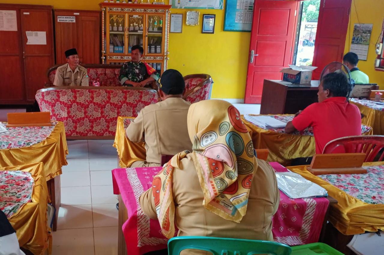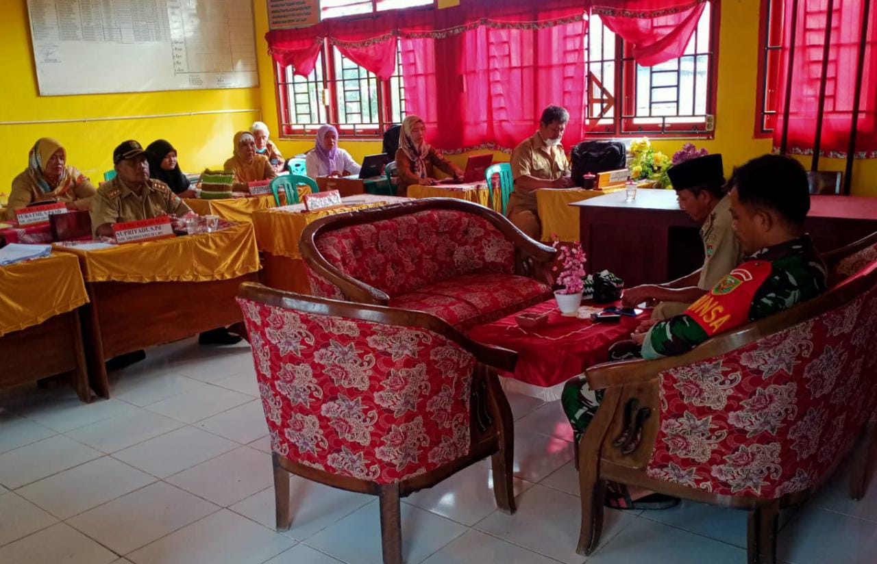 Babinsa Koramil 406-07/Jayaloka komsos dengan kepala Sekolah dan staf SD N Ciptodadi.