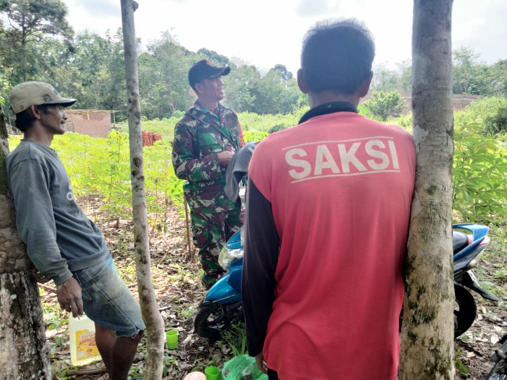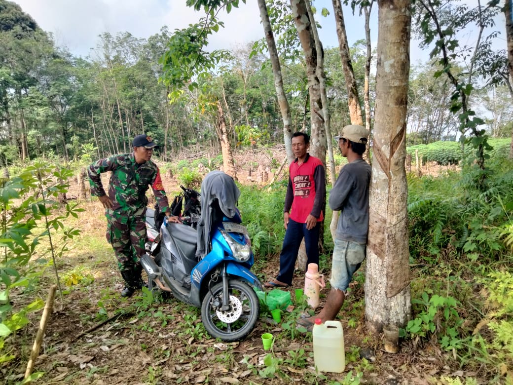 Dalam kegiatan tersebut, Sertu M.Tarhib menyampaikan kepada para petani karet untuk tetap waspada terhadap penularan virus corona atau Covid-19 untuk wabah Covid-19 beberapa hari ini masih terus meningkat dan menyebar di berbagai daerah.