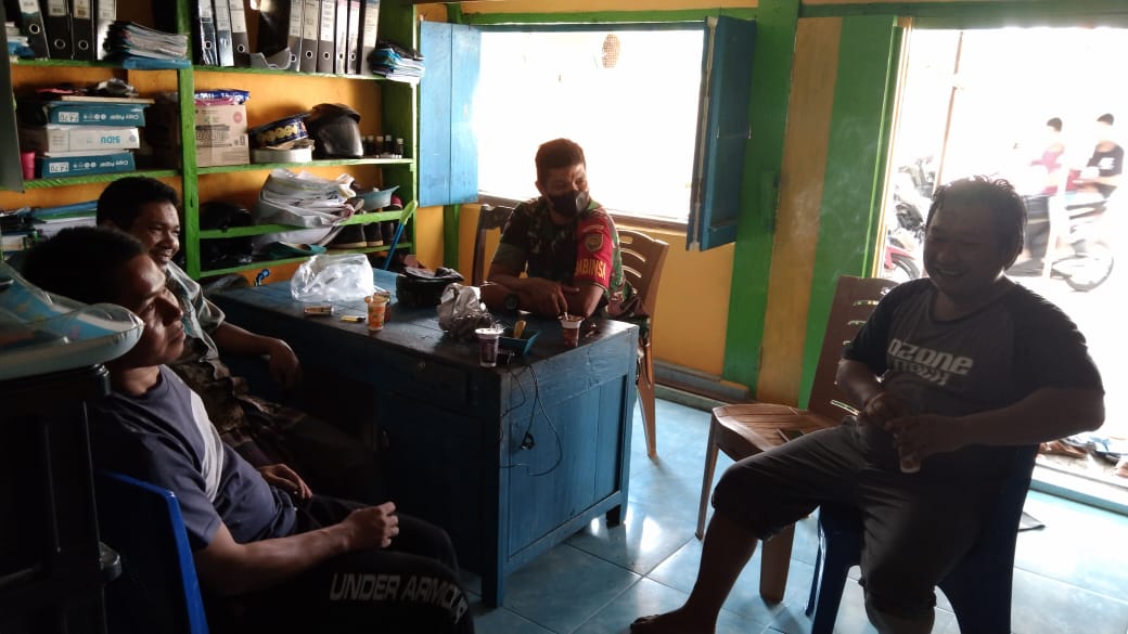 Lensa Garuda- Musi Rawas Utara Sebagai Badan Pengumpul Keterangan Babinsa Koramil 406-01/Rawas Ulu Serda Musliadi melaksanakan komunikasi sosial (Komsos) di Kantor Desa Teladas bersama perangkat Desa Teladas Kecamatan Rawas Ulu, Kabupaten Musi Rawas Utara, Sabtu (25/06/2022).