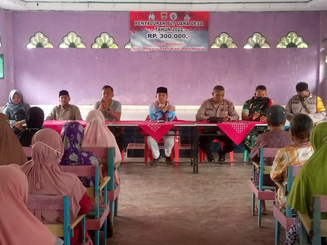Tampak hadir dalam kegiatan Penyaluran BLT DD antara lain Kasi PMD Kecamatan Megang Sakti, Danramil di Wakili Babinsa Serda Tugianto, Kapolsek Tuah Negeri dan Bhabinkamtibmas, Kades Desa Wonosari, Ketua BPD beserta Anggota, Perangkat Desa ,serta 112 Keluarga Penerima Manfaat (KPM)BLT DD.