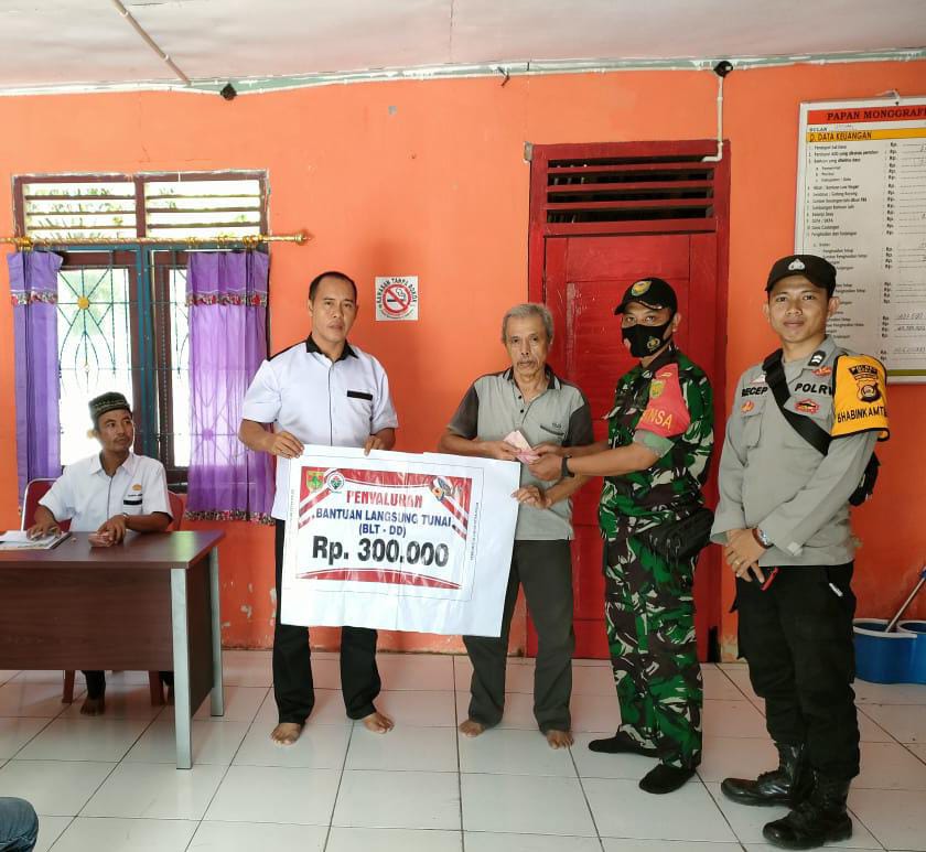 Babinsa Koramil 406-04/Muara lakitan mendampingi sekaligus mengawal pembagian Bantuan Langsung Tunai (BLT) di desa Semangus lama kec muara lakitan,kab Musi rawas.Selasa (28/06/2022).