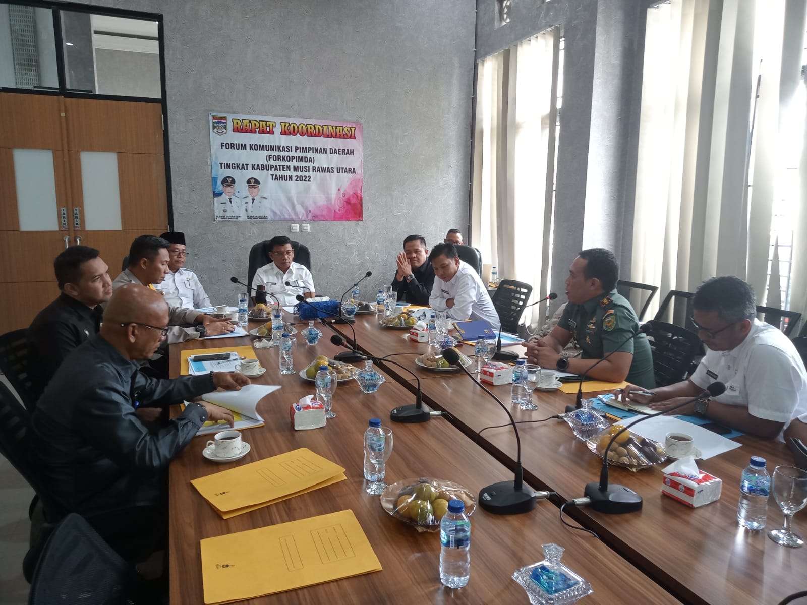 Lensa Garuda- Musi Rawas Utara Bertempat diruang Kerja Bupati Musi Rawas Utara Dandim 0406/Lubuklinggau Letkol Arm Anggeng Prasetyo Sulistyono S.E melaksanakan Rapat bersama Forum Koordinasi Pimpinan Daerah (FORKOPIMDA) Guna Pembahasan tentang Pembinaan untuk masuk TNI khusus Bintara TNI. Rabu(13/07/2022).