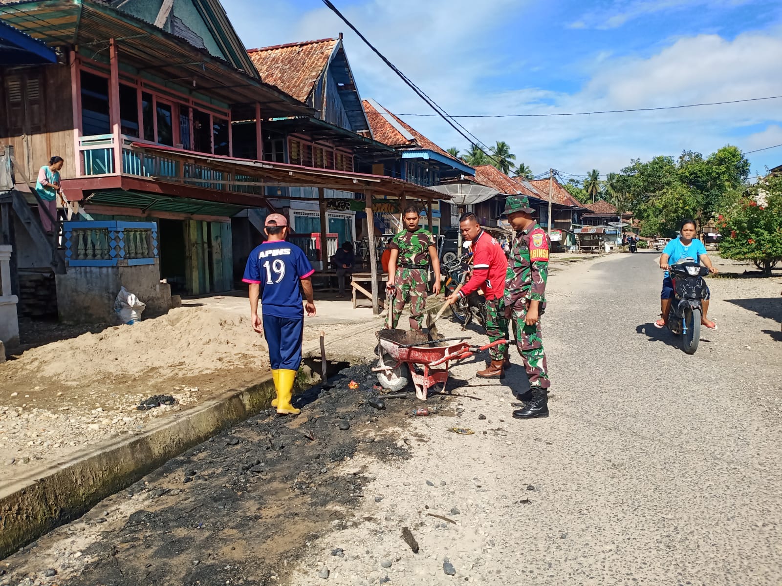 Jalin Kebersamaan, Bat’uud Pimpin 3 Anggota Babinsa Gotong Royong Bantu Warga Bersihkan Parit