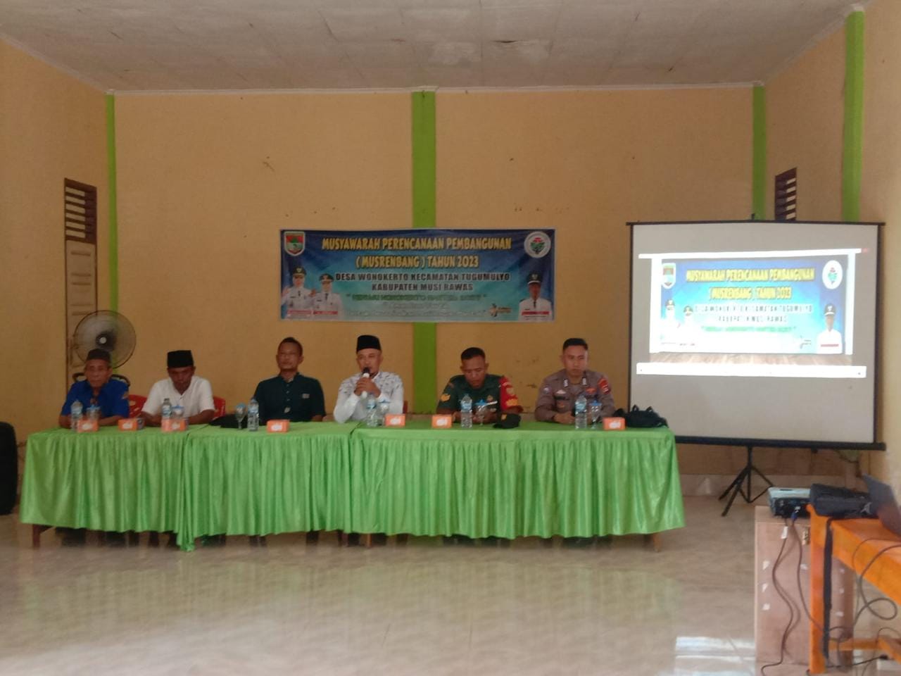 Babinsa Koramil 406-06/Tugumulyo Kodim 0406/Lubuklinggau serma Muhamad Suhaidi Ismail mengikuti rapat musrenbangdes tahun anggaran 2023 di Desa wonokerto kec Tugumulyo kab Musi Rawas. Senin (25/07/2022).