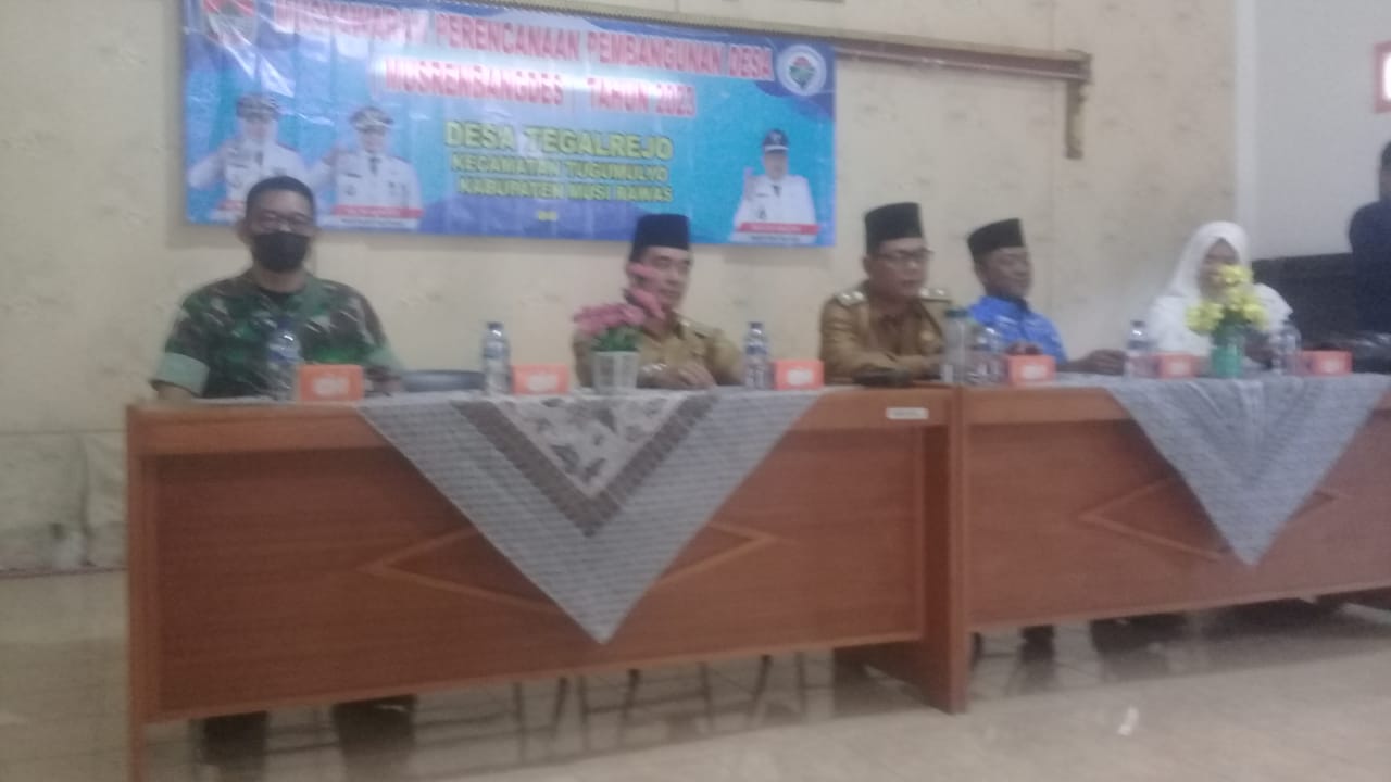 Babinsa Koramil 406-06/Tugumulyo Serda Daswiranto menghadiri Undangan kegiatan Musrenbang Desa D Tegalrejo di Kantor Desa Tegalrejo Kecamatan Tugumulyo Kabupaten Musi Rawas. Rabu(27/07/2022).