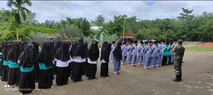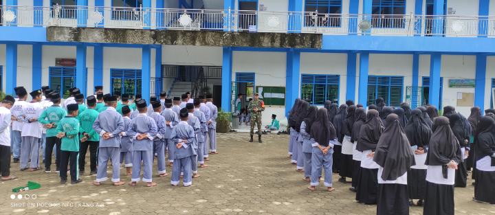Sebelum latihan di mulai, Serda Mincu beri memberikan motivasi kepada peserta Paskibraka Ponpes desa sp 3 Marga baru Agar lebih serius melaksanakan latihan, nantinya para pelajar ini kita siapkan untuk bertugas sebagai pengibar dan penurunan bendera di hari kemerdekaan Republik Indonesia 17 Agustus 2022 mendatang.