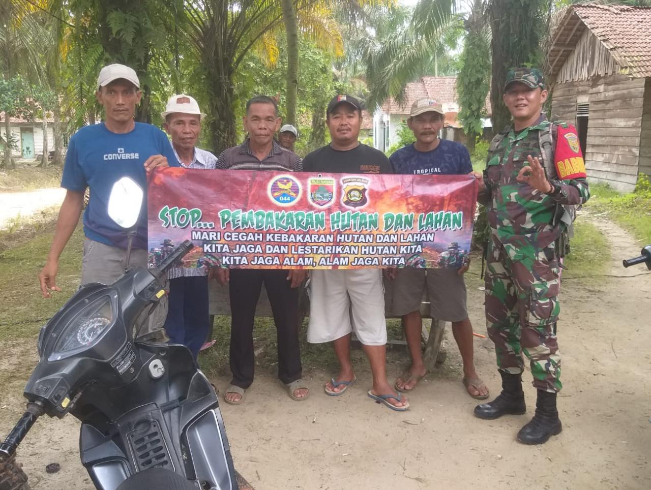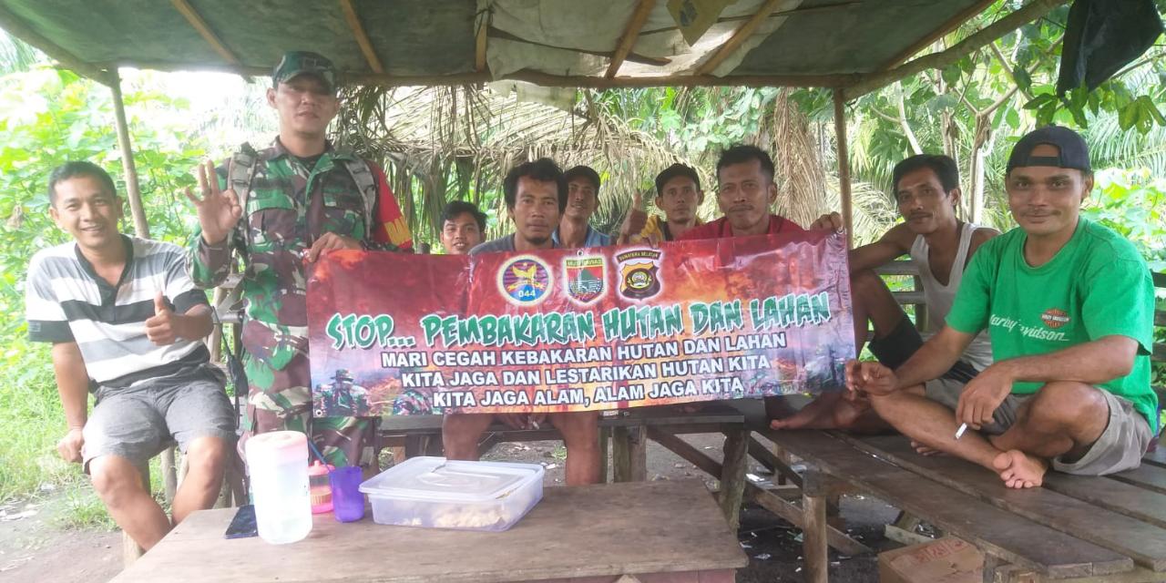 Babinsa turun langsung ke lapangan untuk melaksanakan sosialisasi secara rutin dan terus menerus ke masyarakat untuk mencegah terjadinya bencana kebakaran hutan dan lahan.