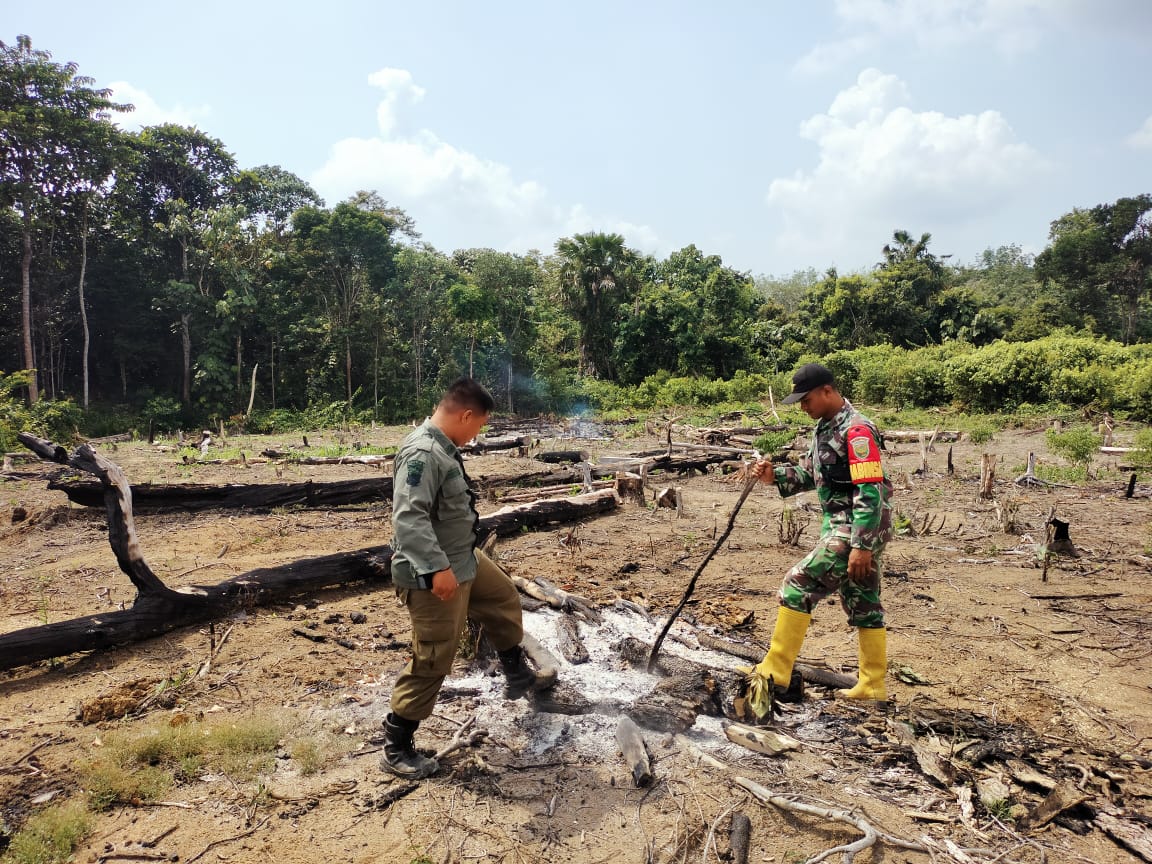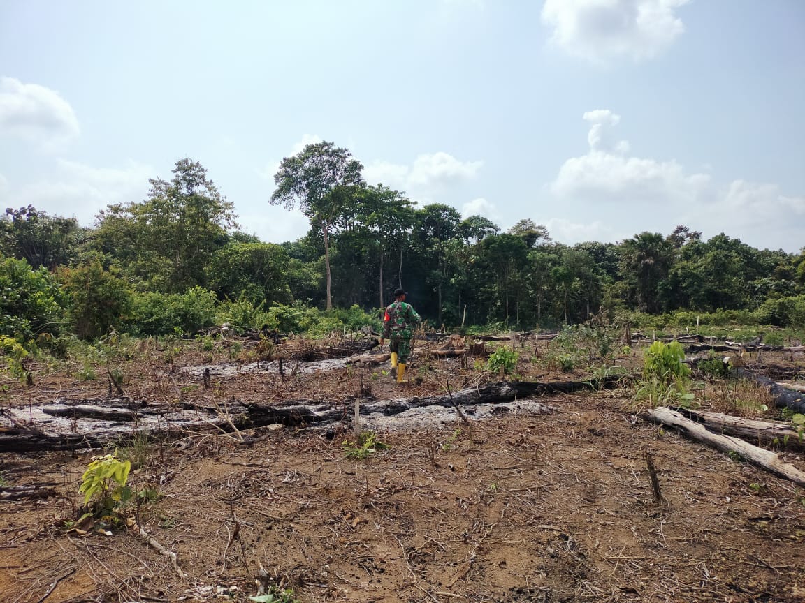 Dengan adanya titik api yang terdeteksi dari titik Hotspot Dugaan sementara dari penyebab terjadinya kebakaran lahan perkebunan karet masyarakat. Babinsa Serka Suwitno dan Serda Syarif dan dua orang dari pemerintah desa melakukan pengecekan langsung ke lokasi bertempat di lahan bapak Rudi umur 43 th pekerjaan tani.