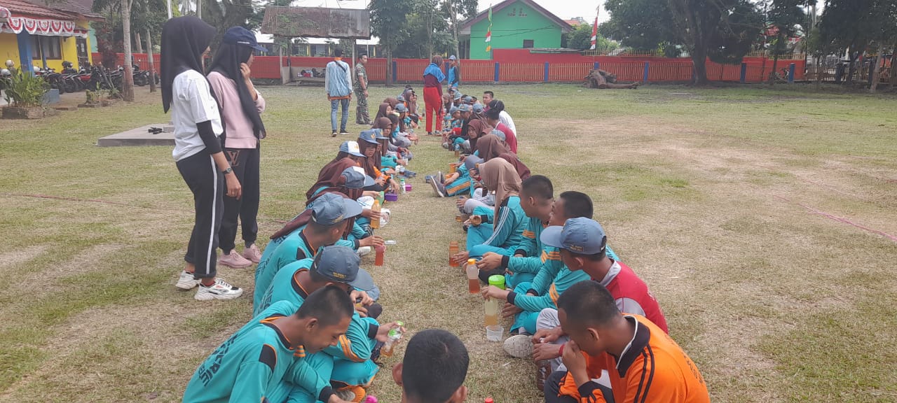 Anggota Pasukan Pengibar Bendera Pusaka (Paskibraka) makan siang bersama di halaman Kecamatan Muara Beliti Kabupaten Musi Rawas. Jum’at (12/08/2022).