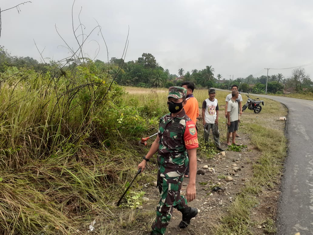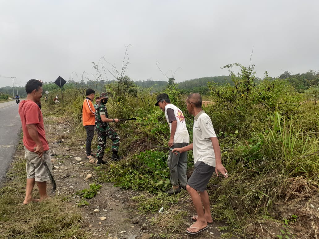 Babinsa yang peduli terhadap lingkungan ini mengingatkan warganya, bahwa rumput di area jalan tersebut sudah rimbun dan perlu untuk dibersihkan, karena sangat menggangu pengendara yang melintas, dan dikhawatirkan akan menjadi sarang binatang buas seperti ular, sehingga babinsa mengajak warganya untuk melaksanakan pembersihan.