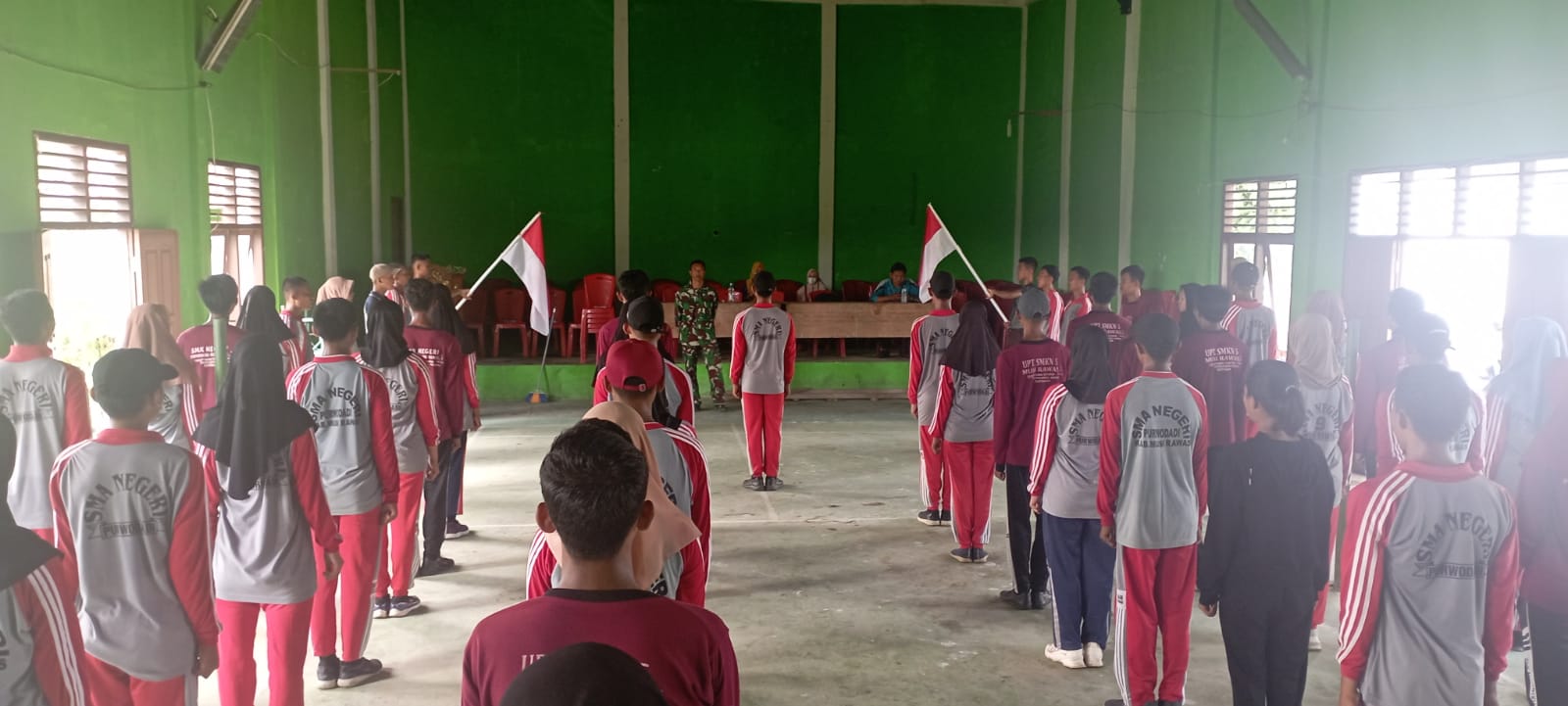 Lensa Garuda- Musi Rawas Koramil 406-06/Tugumulyo Jajaran Kodim 0406/Lubuklinggau Pelda Ismail dan Serda Nisdar Berikan Latihan kedisiplinan, Kekompakan dan kebersamaan dalam baris berbaris kepada Pasukan Paskibraka Kecamatan Purwodadi. Bertempat di Lapangan Desa Madiharjo Kecamatan Purwodadi Kabupaten Musi Rawas. Sabtu (13/08/2022).