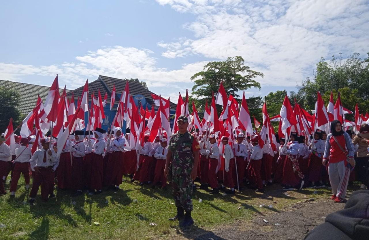Lensa Garuda- Musi Rawas Dalam rangka menyemarakan HUT Kemerdekaan RI ke-77 tahun 2022, Babinsa Koramil 406-09/Terawas Serda Zaenal Arifin hadir dalam kegiatan pengibaran 1000 bendera merah putih di Kantor Kecamatan Selangit , Kabupaten Musi Rawas Senin (15/08/2022).