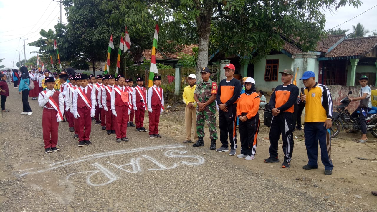 Memperingati HUT RI ke-77, Babinsa Koramil 406-02/Rawas Ilir Lepas Peserta Lomba Gerak Jalan Putra Putri SD – SMP.