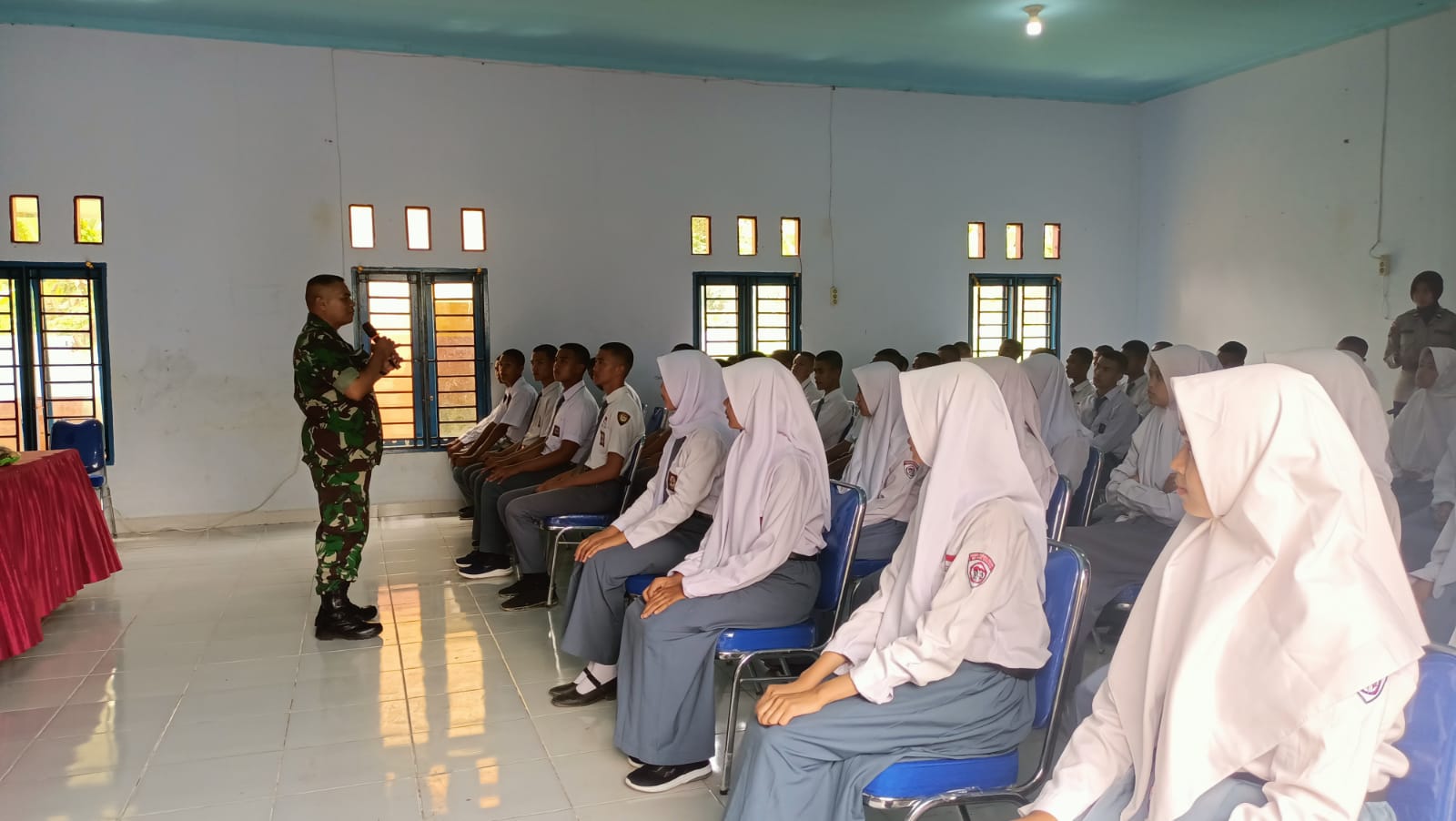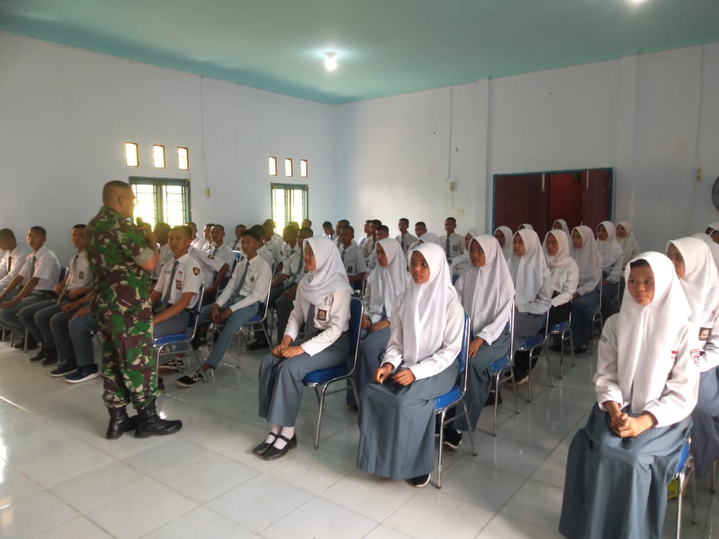Serka Perwanto Babinsa koramil 406-03/Muara Rupit Kodim 0406/Lubuklinggau memberikan materi wawasan kebangsaan (wasbang) kepada siswa-siswi SMA kecamatan karang jaya kabupaten Muratara. Selasa (16/03/2022).
