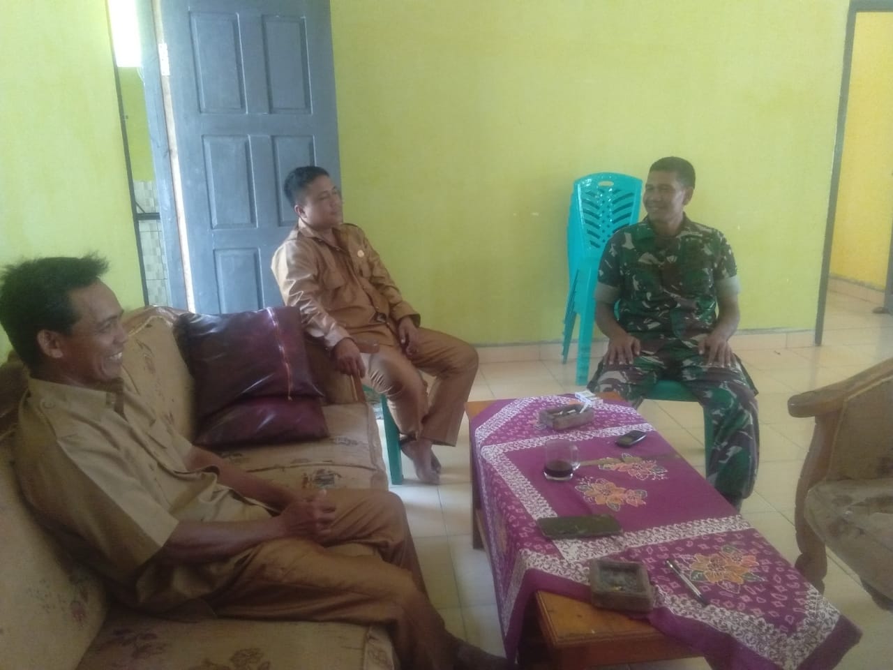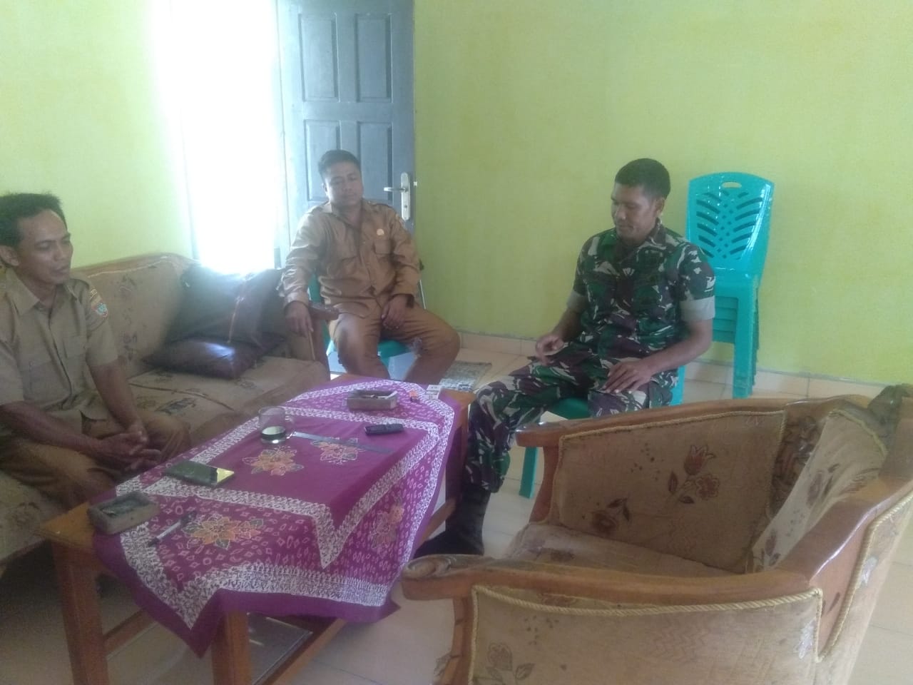 Babinsa Sertu Amansyah mengungkapkan ” Kegiatan Komunikasi seperti ini memang sudah rutin saya lakukan, baik bersama aparatur pemerintah desa maupun dengan warga, Kali ini saya lakukan bersama perangkat Desa guna mewujudkan hubungan kerja sama yang baik di dalam pelaksanaan tugas”, ungkapnya.