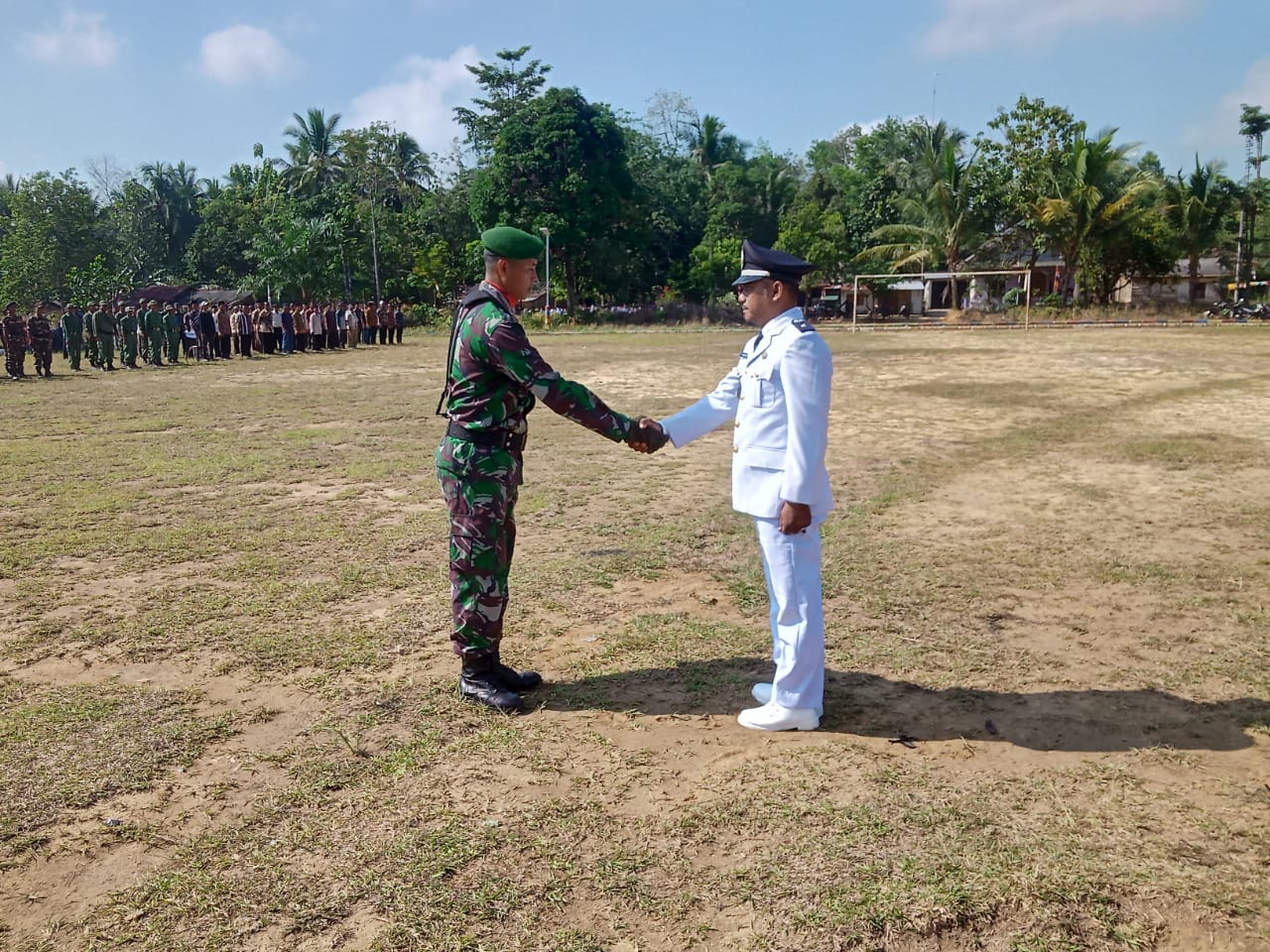 Lensa Garuda-Musi Rawas. Babinsa anggota Koramil 406-04/Muara Lakitan Kodim 0406/Lubuklinggau.mwgikuti upacara pengibaran bendera merah putih dalam rangka HUT RI Ke-77 dalam ke adaan tertib dan aman.Rabu(17/08/2022).
