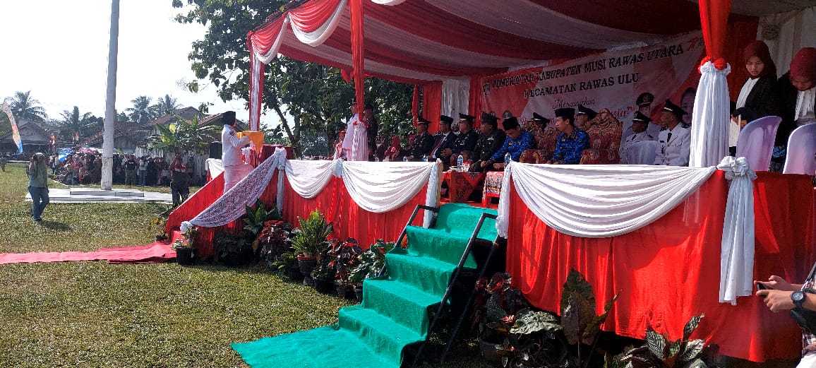 Dalam pelaksanaan upacara tersebut bertindak selaku Inspektur upacara adalah Camat Rawas ulu Pelaksanaan upacara bertempat di lapangan Kantor Camat yang diikuti oleh TNI Dan POLRI, perwakilan seluruh instansi pemerintah dan Unit Pelaksanaan Teknis (UPT) SE -Kecamatan Rawas ulu Kabupaten Muratara.