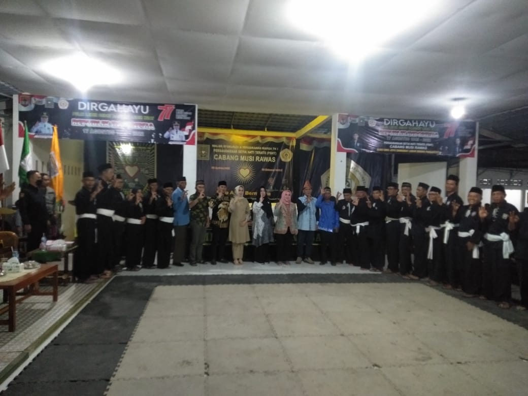 7.lurah/kades kec Megang sakti 8.angota PSHT kab Musi Rawas kegiatan Malam Pengesahan Warga Tingkat 1 Tahun 2022 Persaudaraan Setia Hati Terate (PSHT) Cabang kec Megang sakti, bertempat di padepokan kec Megangsakti.minggu (21/08/2022).
