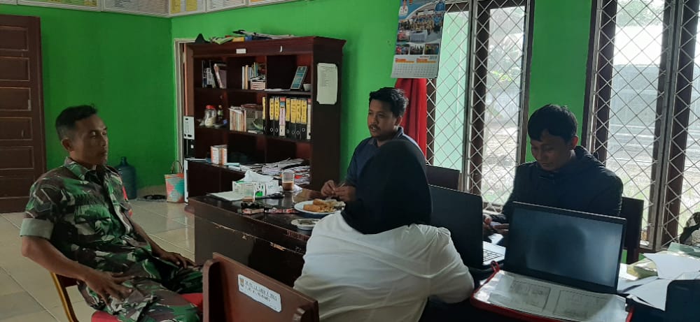 Babinsa Koramil 406-04/Muara Lakitan Sertu Bambang laksanakan komsos di kantor desa Mulyosari