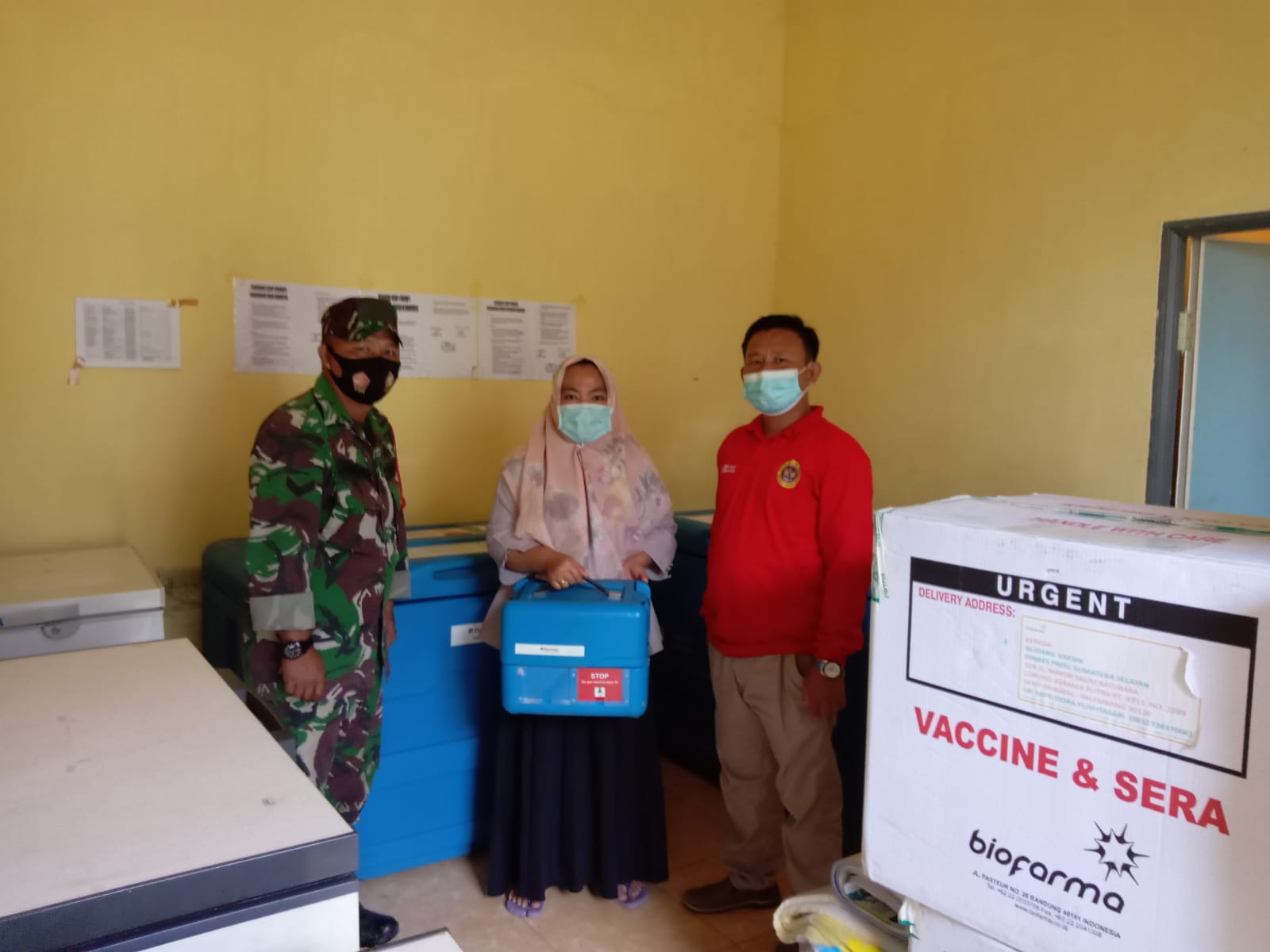 Babinsa Koramil 406-07/Jayaloka Kodim 0406/Lubuklinggau melaksanakan pengawalan pendistribusian vaksin Pfizer oleh petugas Dinas kesehatan Kabupaten Musi Rawas Untuk Puskesmas Jayaloka.