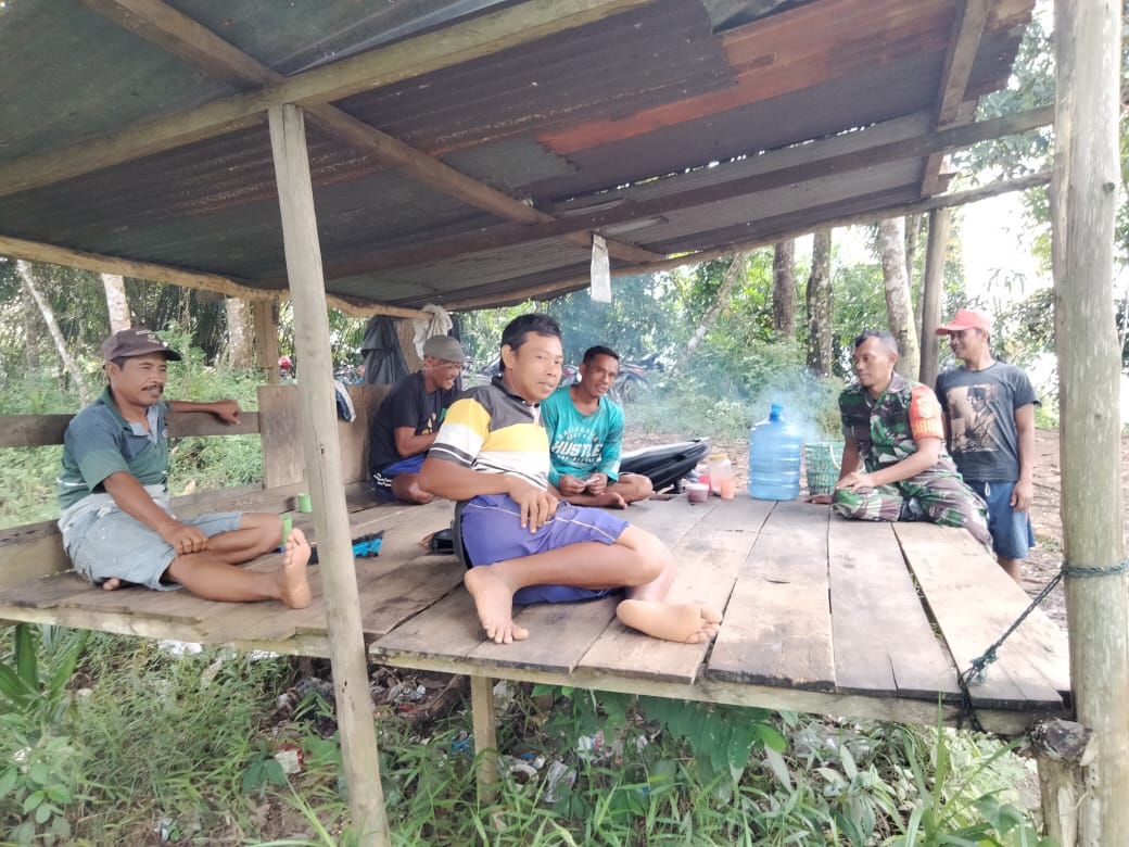 Lensa Garuda- Musi Rawas Babinsa Koramil 406-05/Muara Kelingi Kodim 0406/Lubuklinggau Serda Suryanda melaksanakan kegiatan komunikasi sosial(Komsos) bersama petani karet di tempat peristirahatan area perkebunan karet di Desa Pangkalan Tarum Kecamatan Bulang Tengah Suku Ulu (BTS ULU) Kabupaten Musi Rawas , Rabu(31/08/2022).