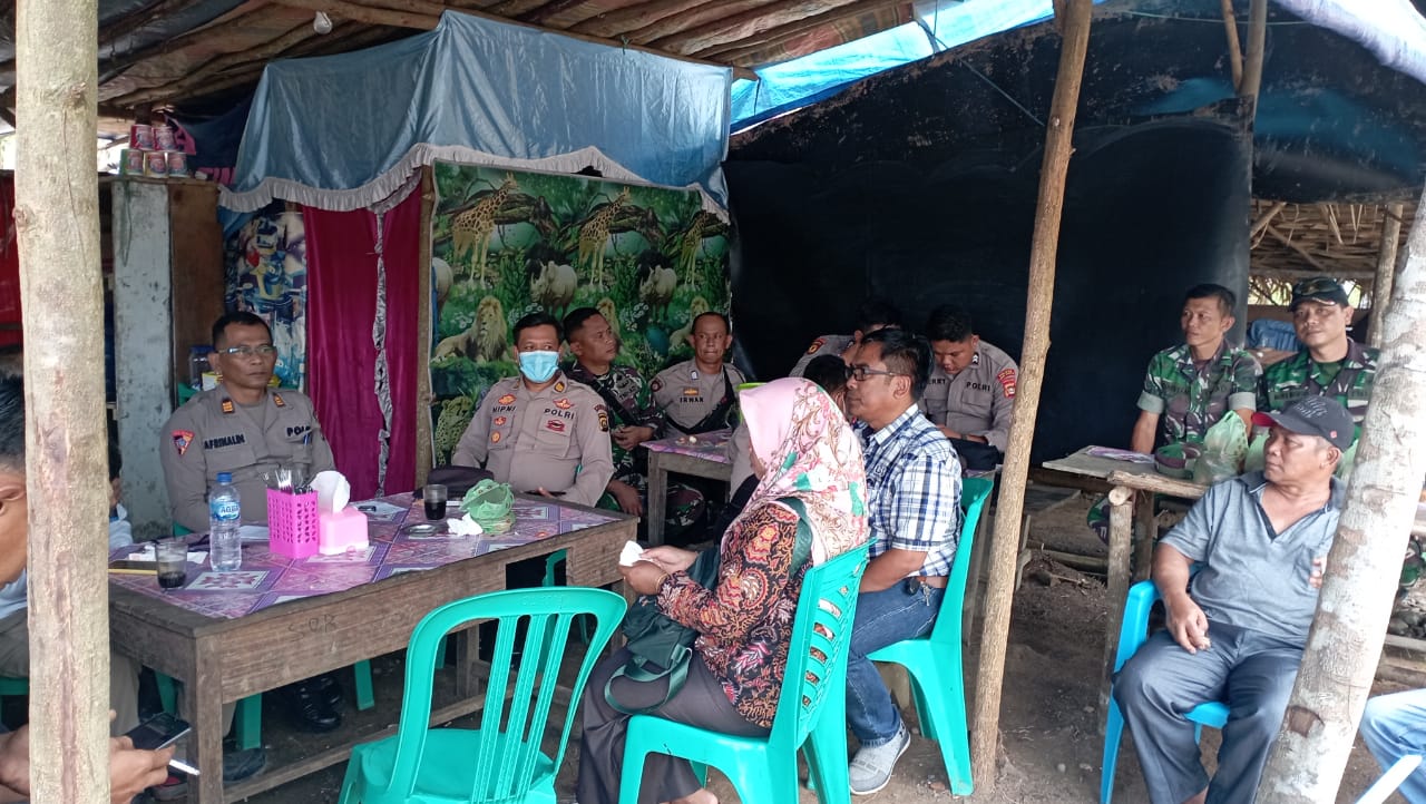 Sertu Wahyu Babinsa Koramil 04/Muara Lakitan Kodim 0406/Lubuklinggau hadiri rapat / mediasi yang di lakukan pihak PT dan Masyarakat desa Semangus dan desa sp 10 pian raya.