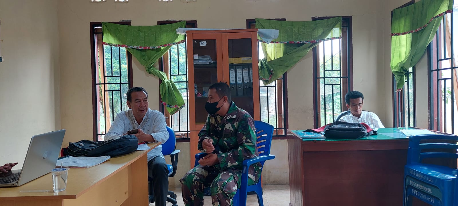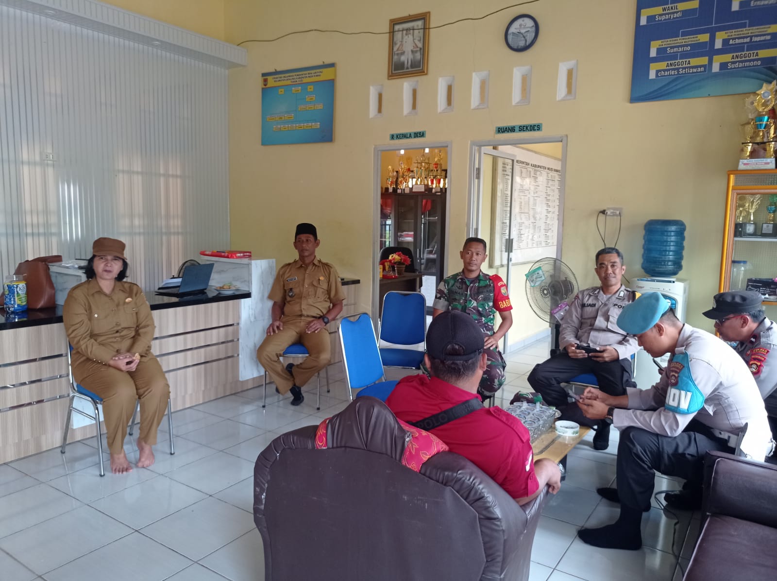 Babinsa Koramil 406-01/Rawas ulu Serda Aroni rosen laksanakan komsos di kantor desa binaan.