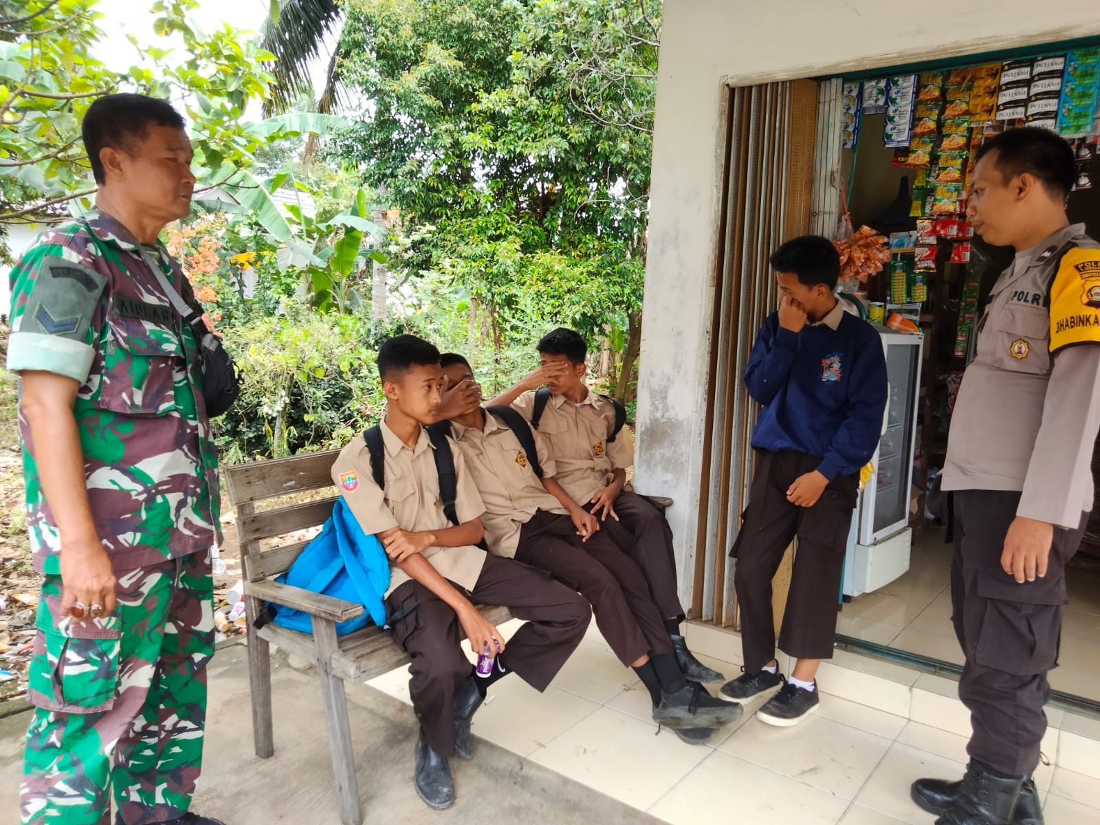 Babinsa dan bhabinkabtibmas Beri Arahan Kepada Siswa Yang Kedapatan Bolos Sekolah