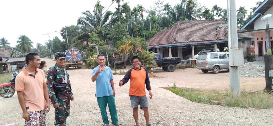 Babinsa Koramil 406-02/Rawas Ilir Kodim 0406/Lubuklinggau Sertu Hendri Gunadi melaksanakan Komsos bersama Warga di Desa Air Bening Kecamatan Rawas Ilir Kabupaten Musi Rawas Utara, Sabtu (01/10/2022).