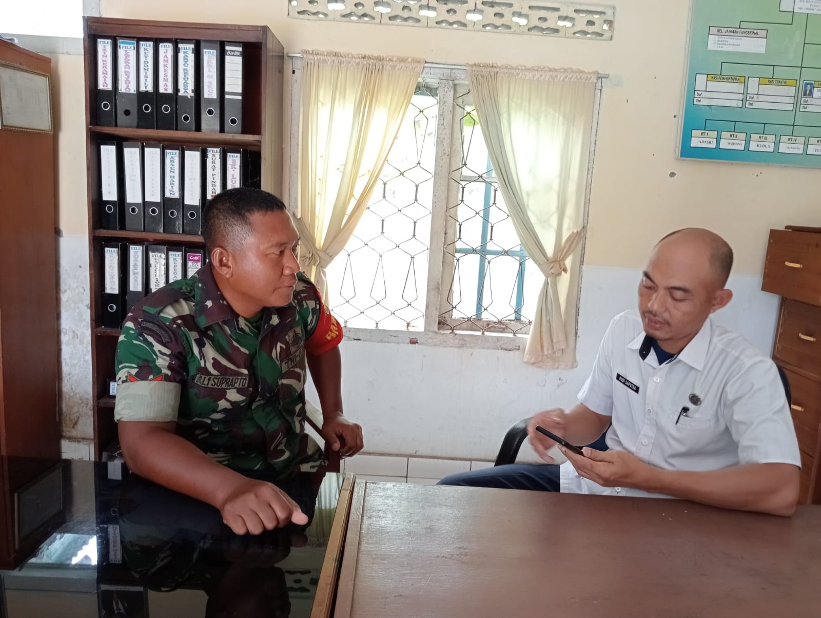 Kegiatan ini merupakan kegiatan rutinitas aparat Komando kewilayahan, guna meningkatkan hubungan harmonisasi antara aparat teritorial yakni sebagai babinsa terhadap aparat desa binaannya, agar terjalin hubungan yang baik dengan cara pendekatan komunikasi sosial.