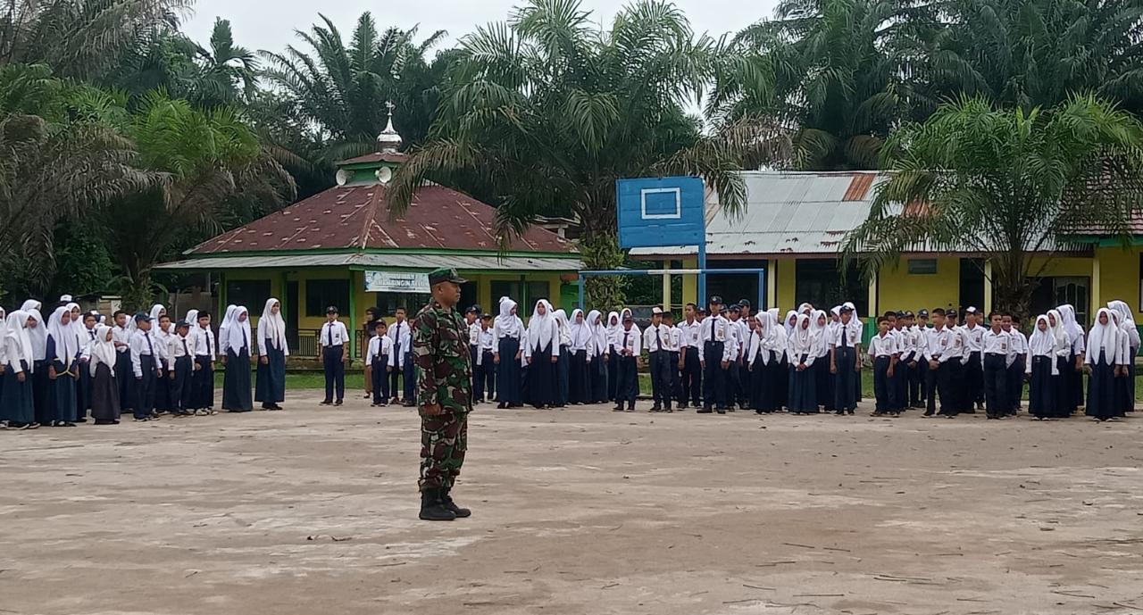 Babinsa Koramil 406-02/Rawas Ilir Sertu Badiantoro Bertindak Sebagai Komandan Upacara di Sekolah di SMP N Bingin Teluk