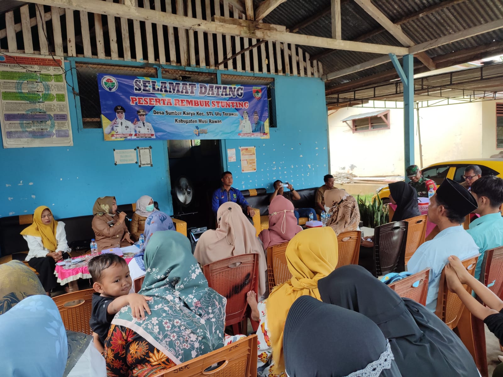 Lensa Garuda, Musi Rawas – Babinsa Koramil 406-09/Terawas Serda Adi Susanto hadiri kegiatan Rembuk Stunting bertempat di Kantor Desa Sumber Karya Kecamatan Stl.Ulu Terawas Kabupaten Musi Rawas, Senin (3/10/2022).