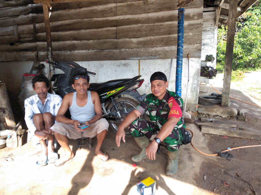 Babinsa Sertu Wahyu Nugroho yang kesehariannya bertugas sebagai Babinsa di wilayah Desa sp 5 trianggun jaya, tujuan dilaksanakan Komsos dengan warga tersebut adalah untuk mempererat tali silaturahmi, sekaligus mencari mitra dilapangan yang bermanfaat untuk mempermudah tugas kedepan.