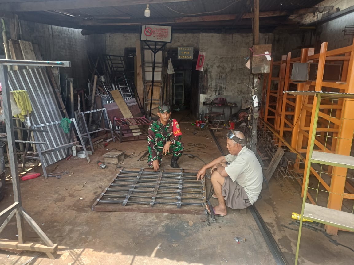 Disela-sela memonitoring wilayah binaan, Pelda Tri Wega Saputro menyambangi salah satu bengkel las Trali Besi milik warga, Bapak Tumbras Berlokasi di Jalan Mawar Merah Kelurahan Marga Rahayu Kecamatan Lubuklinggau Selatan ll, Kota Lubuklinggau, Rabu ( 12/10/2022).