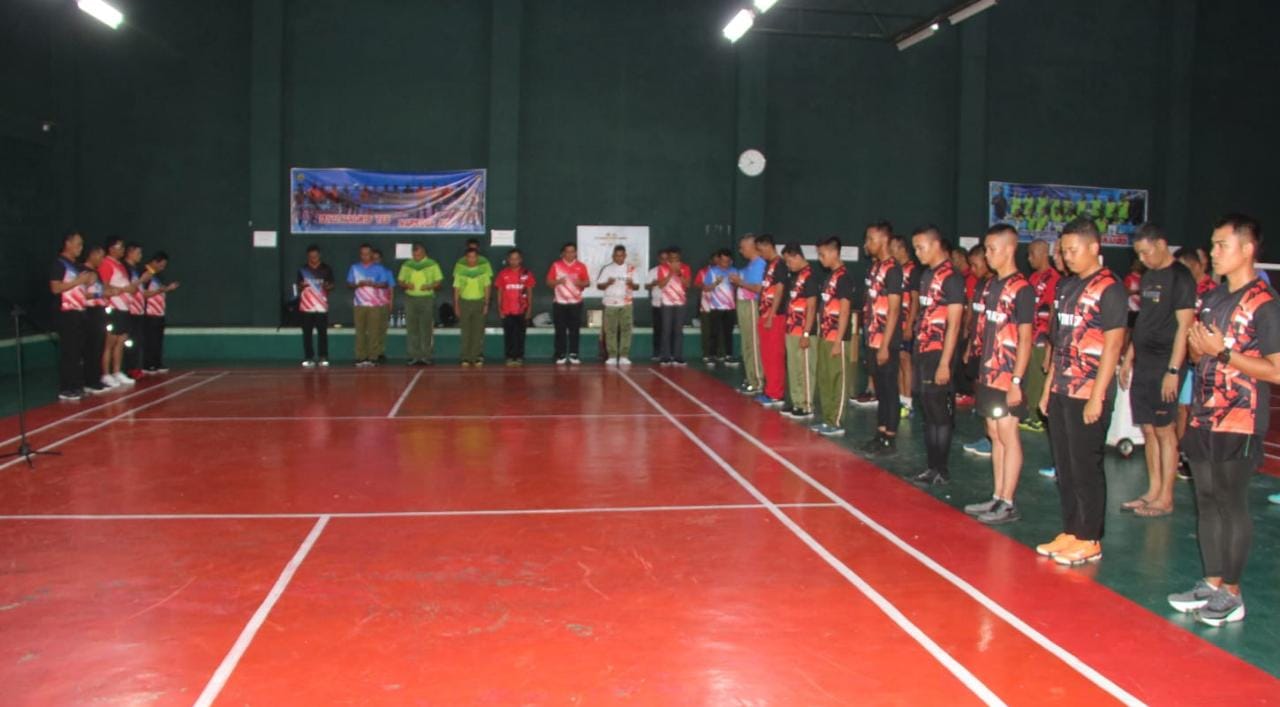 Pembukaan turnamen perlombaan Badminton Sinergitas TNI – POLRI dalam Memperingati HUT TNI ke 77 Kodim 0406/Lubuklinggau selesai dilanjutkan Pertandingan Eksebisi antar Pejabat.(Pendim 0406/LLG).