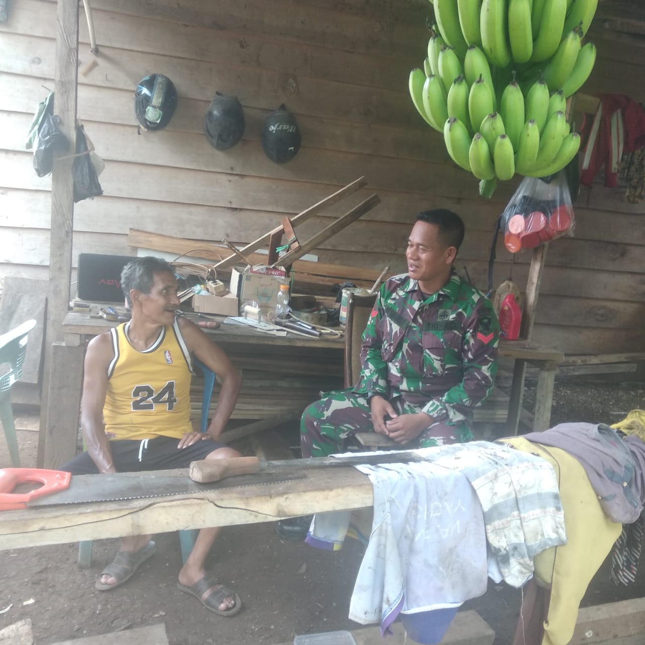 Ciptakan keakraban dengan warga babinsa koptu Iin sunarto komsos dengan warga desa binaan