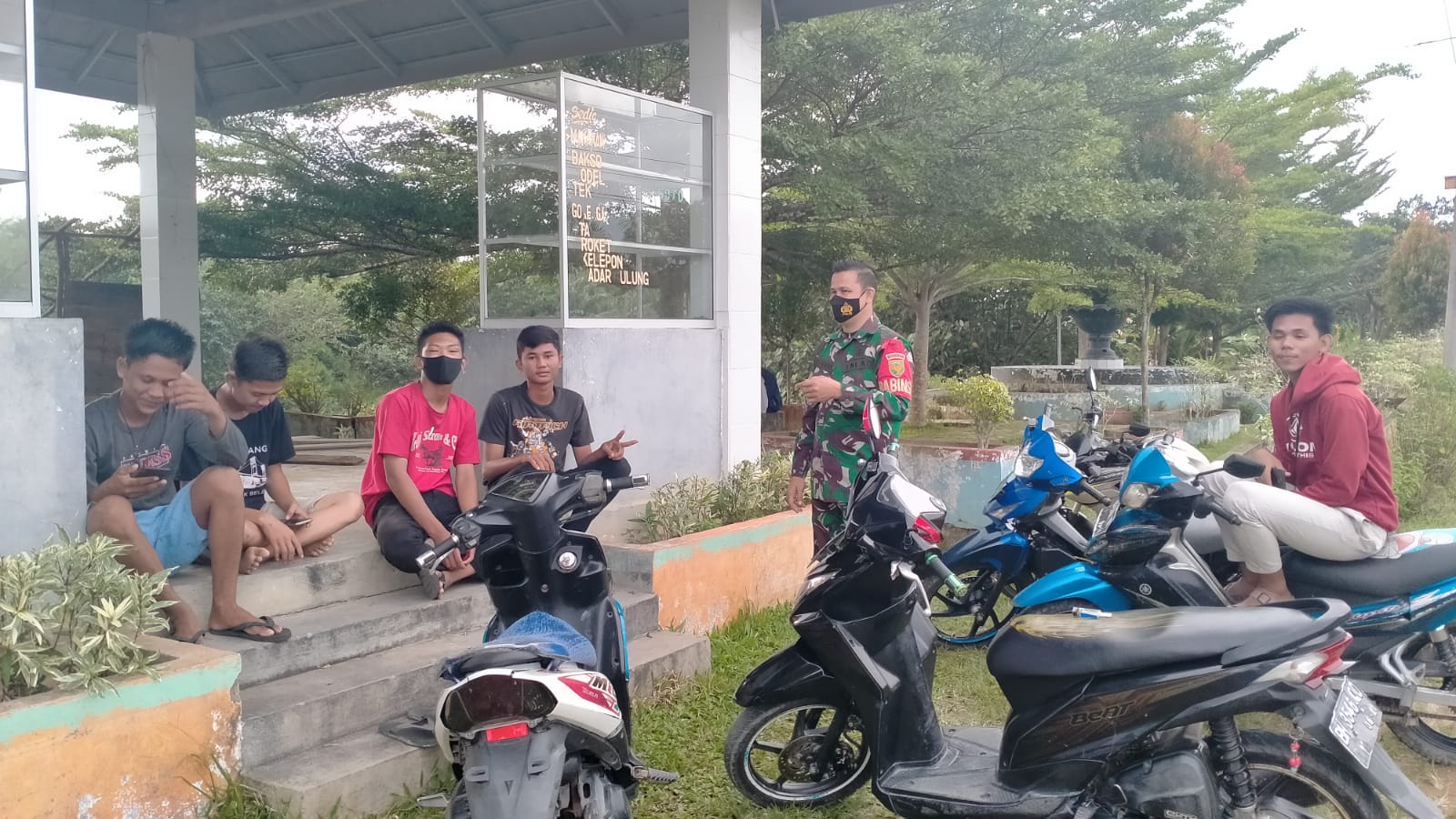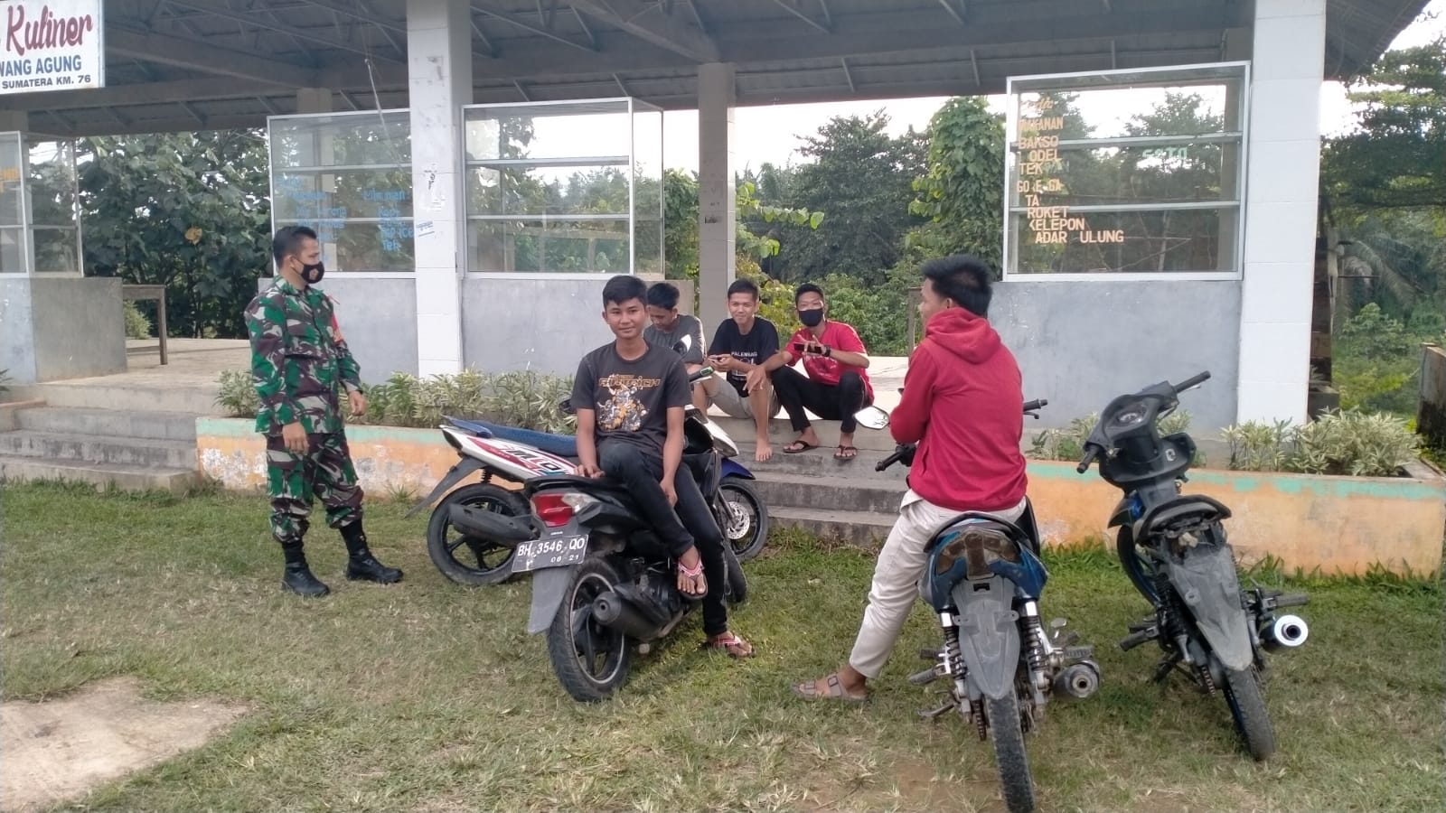 Sertu Juli Hendri Babinsa Koramil 406-03/Muara Rupit Kodim 0406/Lubuklinggau melakukan Komunikasi Sosial (Komsos) dengan pemuda di Desa Lawang agung, Kecamatan Muara Rupit, Musi Rawas Utara, Kamis (27/10/2022).