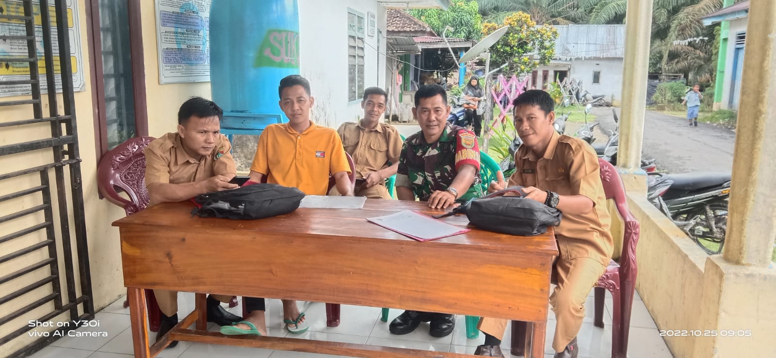 Sertu Kimbing bersama perangkat desa membahas tentang perencanaan kegiatan gotong royong bersihkan lingkungan dan parit parit, gorong-gorong yang tersumbat, kegiatan tersebut direncanakan pada hari minggu.