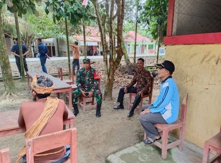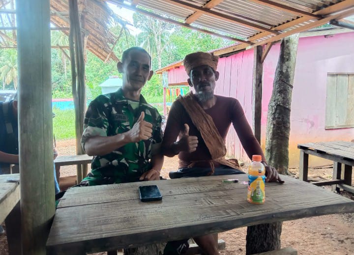 Babinsa Koramil 406-03/Muara Rupit melaksanakan Komunikasi Sosial guna menjalin interaksi/komunikasi sosial yang baik dengan kepala suku Anak Dalam Desa Sungai Jernih Kecamatan Rupit Kabupaten Musi Rawas Utara, Sabtu (29/10/2022).