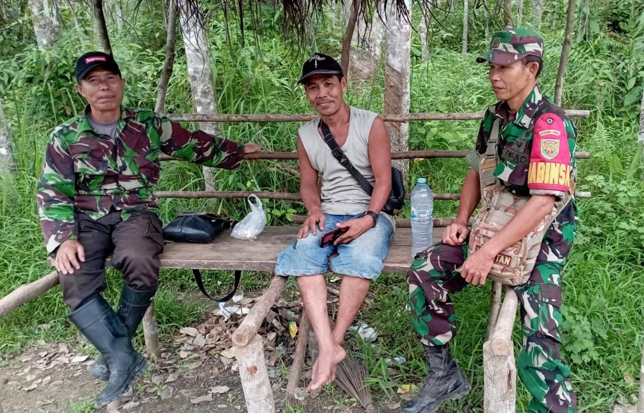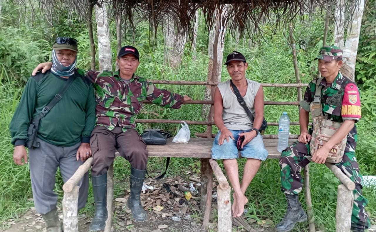 Babinsa Koramil 406-04/Muara Lakitan sertu Yunistan komsos dengan petani karet desa Tegalsari sp 5.
